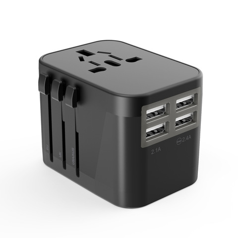 Adaptateur de voyage universel Portable noir en matériau ABS, adaptateur de prise électrique